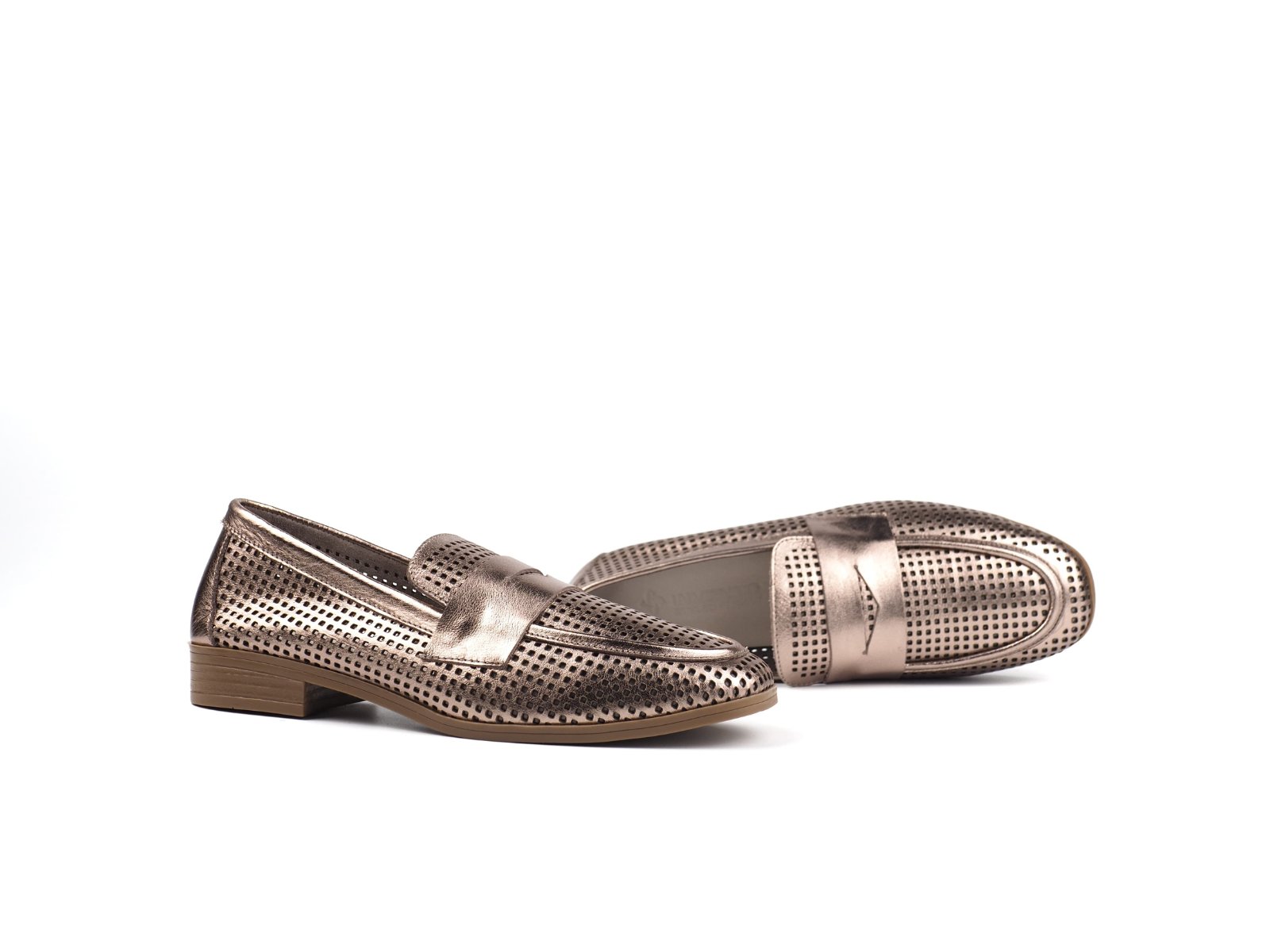Ženske kožne mokasine Invento 111036 Metalic