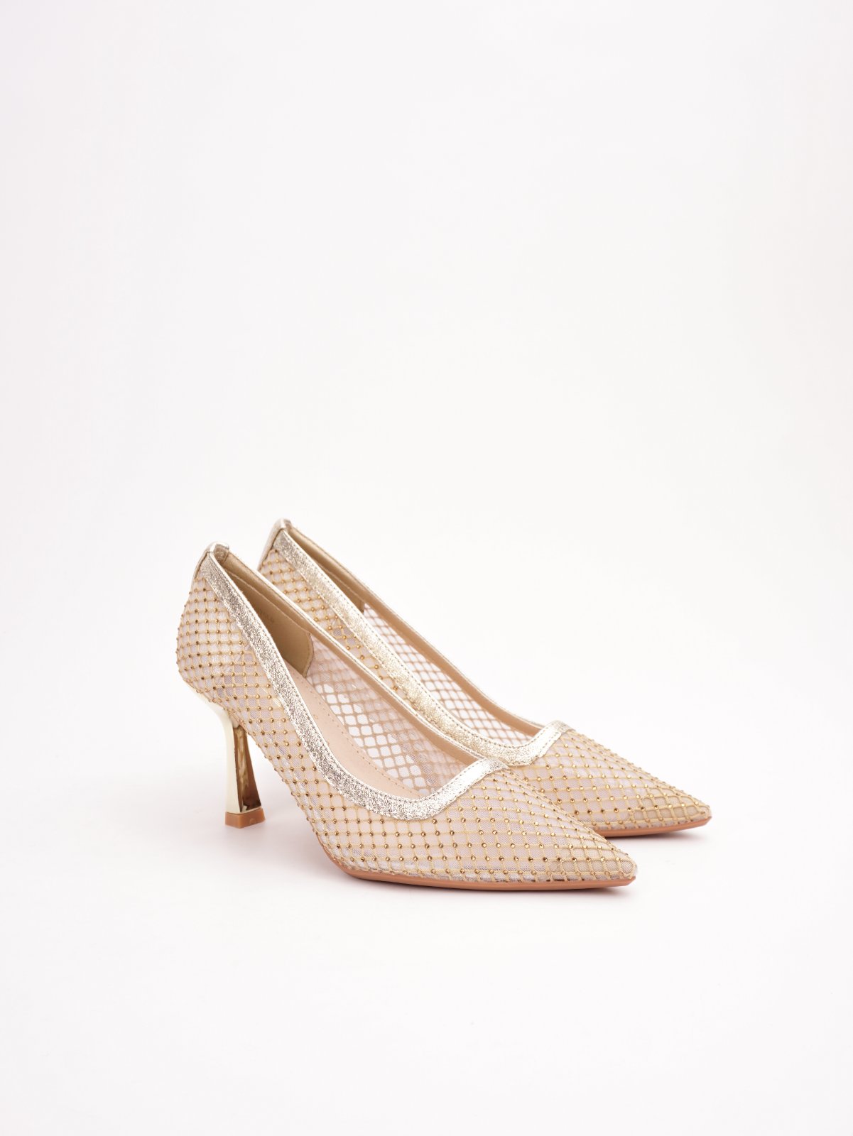 Boja: ZlatnaLice: Visokokvalitetni eko materijal Postava:Visokokvalitetni eko materijalĐon: Termoplastična gumaVisina pete: 8cmNačin izrade: lepljena Namena: obuća za suvo vreme Održavanje: obuću čistiti suvom i mekom četkomKolekcija Jesen/Zima 2025/26